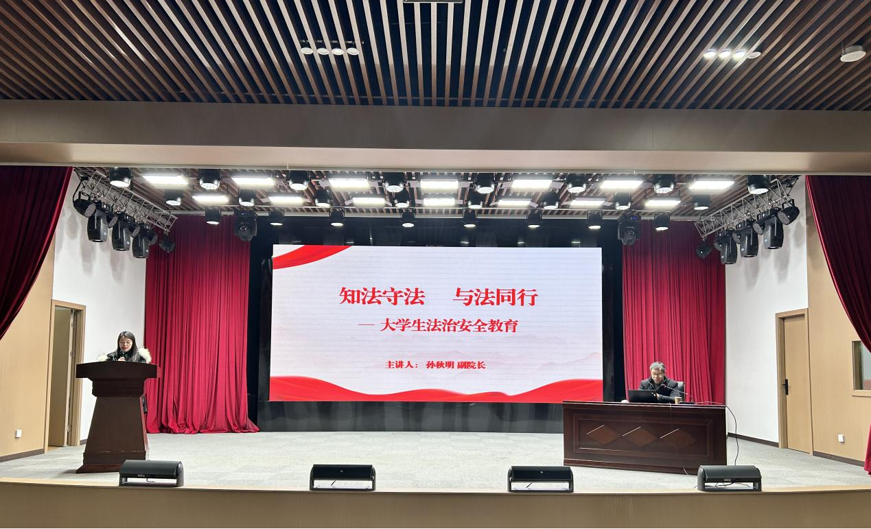 为深入推动管理服务力量下沉学生社区,精准回应学生需求,筑牢校园安全屏障,引导青年学子树立“心中有法、行动守法”的法治意识,2025年12月23日,学院副院长孙秋明应邀为轨道系师生作题为《知法守法 与法同行》的法治安全教育讲座。