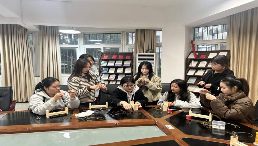 2025 年 12 月 30 日,元旦佳节前夕,校园内暖意融融。我系党总支副书记冉婧入一行来到学生活动中心走进老挝留学生群体,开展慰问交流活动,既关切询问学子们学习生活中的诉求与困难,为他们答疑解惑,又以中华传统技艺为媒,搭建文化交流桥梁,让留学生们在异国他乡感受温暖。
